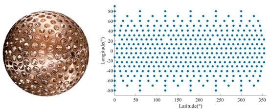 LAGEOS-1 was launched in 1976. The large mass and a stable relatively medium orbit makes it to be an ideal target for Changchun station to achieve single-photon (or few photon) detection. The distribution of retroreflector over LAGEOS-1 is indicated in Figure 2 [].