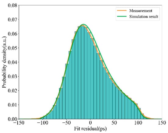 For convenience of calculation, the background noise is neglected. The probability density function of SLR data distribution can be modeled as a convolution of system error function , return pulse function , and single-photon avalanche diode (SPAD) time jitter [,]: