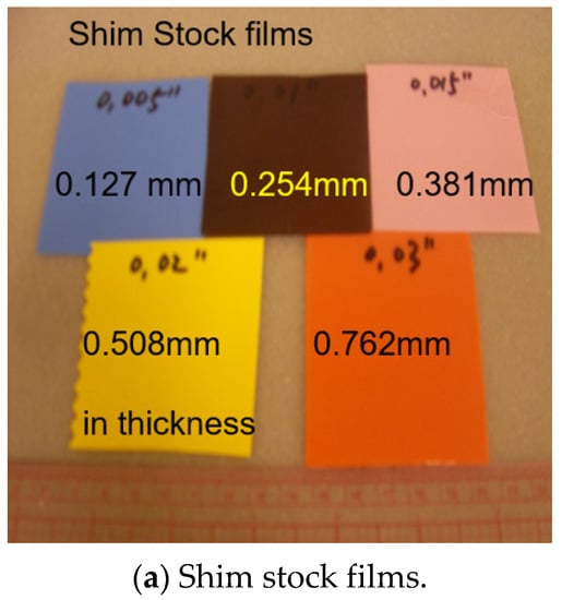 Samples of (a) Shim Stock films and (b) GFRP composites with various thicknesses.