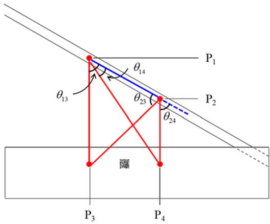 Since targets on stay cables and the fixed structure cannot be easily distinguished, targets were sorted according to their x coordinates. As shown in Figure 5, the first two targets are stay cable targets P1 and P2, and the last two targets are fixed structure targets P3 and P4. The slopes of P1P2, P1P3, P1P4, P2P3 and P2P4 are first determined, based on which the intersection angles of them are calculated using Equation (3).