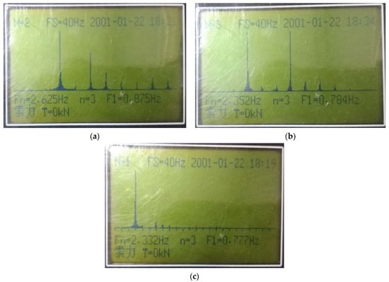According to string theory, the natural frequency of stay cable is an integer multiple of the fundamental frequency [2]. The fundamental frequency is generally determined as the (average) difference between two adjacent peak frequencies [14], as indicated in Equations (4) and (5).