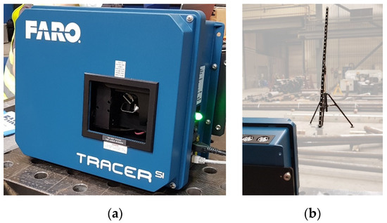 The tested device was a FARO Laser Projector TracerSI with BuildIT 2019 software. Table 1 specifies the technical specification of the tested device. Figure 2 shows the tested system and experimental setup.