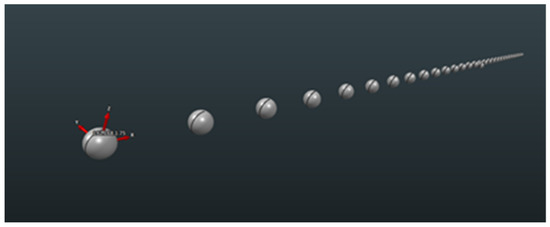 Spheres numbered 0, 2, 9, 16, 23, and 30 were used to measure errors. The sequence and the method of determining the length follow the recommendations of the ISO 10360:1–12 standard. In order to improve the optical properties, the scanning spray was used. This makes it possible to obtain a non-reflective surface while not affecting the measurement results’ quality.