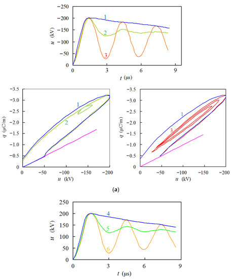 The traditional approach is only suitable for modeling of the q–u curves under double exponential surges [20]. It introduced the corona charge qC by subtracting the induced charge C0u from the total charge q [20,22,23], as illustrated in Figure 5. The corona current is described by: