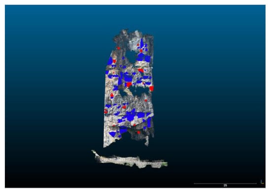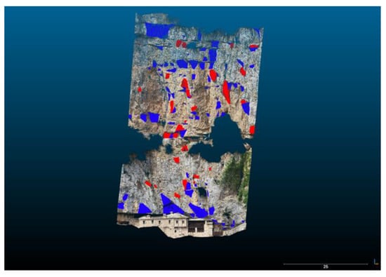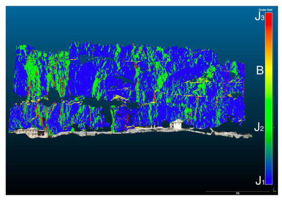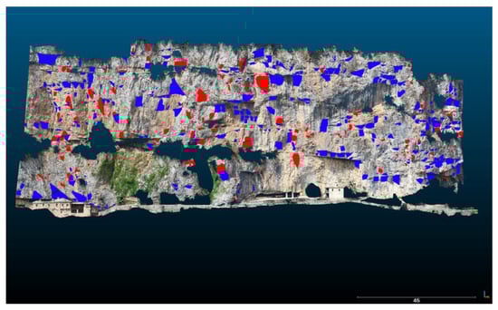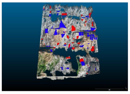 Following the extraction, the point cloud was processed using the CloudCompareTM software v.2.11.1 (Anoia). In order to proceed to the structural analysis, the whole 3D model was trimmed of vegetation, constructions and “noise” in general. This prevented their presence in the final point cloud from affecting the correct recognition of discontinuities.