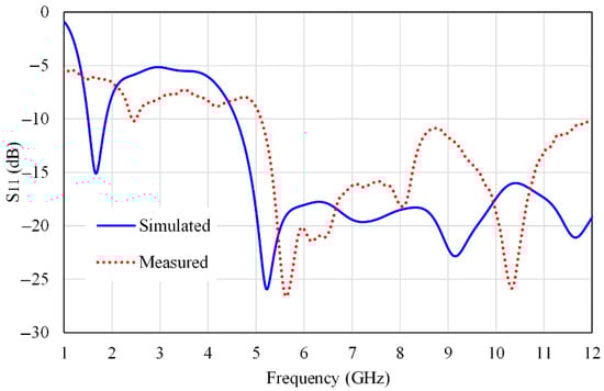 The S-parameter response of the USRP antenna is shown in Figure 4, which depicts the fact that the antenna can also effectively operate in the bandwidth from 5 to 12 GHz making its bandwidth compatible with our proposed chipless tag, which operates from 5 to 8 GHz.