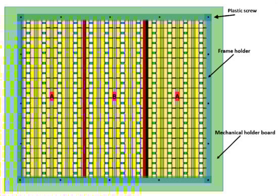 The construction of a three-stripe MS could be realized by using a plastic frame holder in the front and a plastic board on the back side for mechanical strength, as shown in Figure 13. In Figure 13, the incident beam “sees” the whole MS uniformly, aligned at Z = 0 (the front side of the MS). On the back side, it is different, but no effect on the reflected beam was found.