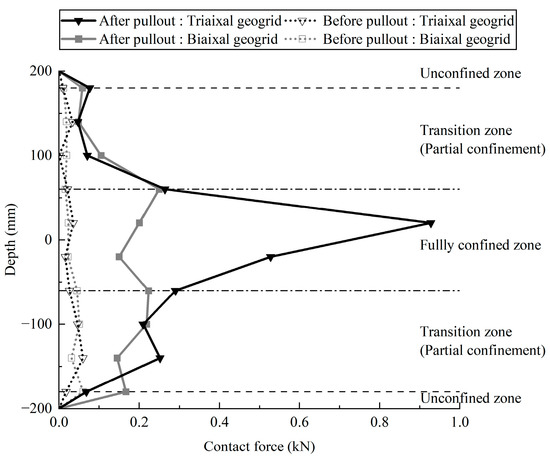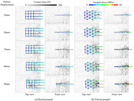 4.1. Interaction Behavior between Particles and the Geogrid