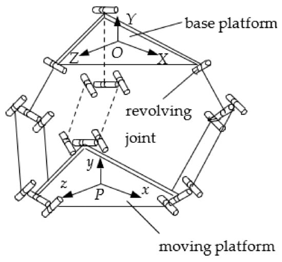 In this paper, only the clearance errors of the revolute joints between the base platform and the driving arms are considered. According to the “effective length theory” [], the end-effector position errors caused by the radial clearance errors of revolute joints are obtained as: