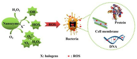 - Wang, Z.; Dong, K.; Liu, Z.; Zhang, Y.; Chen, Z.; Sun, H.; Ren, J.; Qu, X. Activation of Biologically Relevant Levels of Reactive Oxygen Species by Au/g-C3N4 Hybrid Nanozyme for Bacteria Killing and Wound Disinfection. Biomaterials 2017, 113, 145–157. [Google Scholar] [CrossRef]