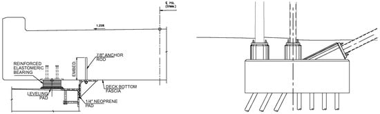 West abutment bearing detail (left) and West footing of the arch and pier P3 (right). (Adapted from original drawings of PU Facilities and HNTB).