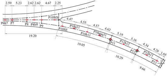 Figure 8, Figure 9 and Figure 10 plot the obtained bending moment influence lines at three pier locations: P8, P10 and P11h12 (at half the span between P11 and P12), respectively. Numerical influence lines are compared with those obtained from sensor measurements [], which are reported in red solid lines together with measurement errors in red dashed lines.