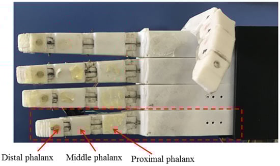As the essential component of the SMA-based robotic hand, the robotic finger is designed by the SMA actuator embedded into a polymeric matrix [15,16]. The structure and the driving method of the SMA-based robotic finger are simple, whereas SMA has the characteristic of nonlinearity. The “shape memory effect” of SMA, between a low-temperature martensite phase and a high temperature austenite phase, can lead to the complexity and difficulty of controlling the robotic hand. The existing research focuses more on the method of controlling the SMA actuator, which can be separated including: (1) constructing models, for instance, mathematical models [17,18] and the “black box” model [19,20], to represent the SMA dynamics for further control; (2) designing a controller to improve the tracking ability of the SMA actuator, such as sliding mode control [21], PID [22] and fuzzy logic [23].