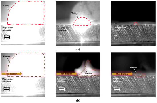 (a) Formation and extinction of plasma in the absence of gas flow. (b) Plasma generation and annihilation geometry when nitrogen gas flow is 350 cm3/s.