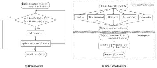 - Liu, B.; Yuan, L.; Lin, X.; Qin, L.; Zhang, W.; Zhou, J. Efficient (α, β)-core computation: An index-based approach. In Proceedings of the World Wide Web Conference, San Francisco, CA, USA, 13–17 May 2019; pp. 1130–1141. [Google Scholar]