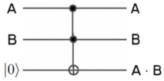 The classical AND gate is shown in Figure 7. The classical AND gate can be replaced with the Toffoli gate.