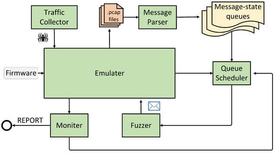 Queue Scheduler: Queue Scheduler sends the constructed state-aware queues to the Emulator and collects execution information after 10 s separately. Then this component ranks these queues according to the algorithm in Section 3.2 and sends queues to Fuzzer in order.