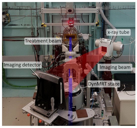 Barnes [29] and Livingstone et al. [33] describe the use of a Toshiba X-ray tube and Hamamatsu C10900D flat panel detector which offers a field of view encompassing the entire DynMRT stage with a single exposure at an effective pixel size of 0.16 mm × 0.16 mm. Operating at 40 kVp and 10 , this configuration also provides the lowest doses with good contrast for image guidance on the treatment stage [29,33].