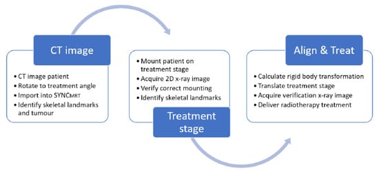 - SyncMRT is used to calculate and apply the necessary transformation to the treatment stage, aligning the centre of the tumour volume with the centre of the treatment field.