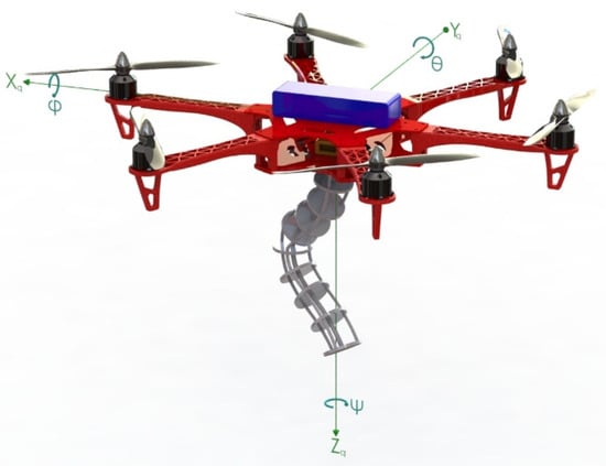 - Kim, S.; Choi, S.; Kim, H.J. Aerial manipulation using a quadrotor with a two DOF robotic arm. In Proceedings of the 2013 IEEE/RSJ International Conference on Intelligent Robots and Systems, Tokyo, Japan, 3–7 November 2013; pp. 4990–4995. [Google Scholar]