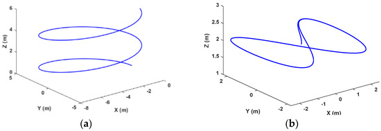 UAV trajectory: (a) helical trajectory, (b) infinity trajectory.