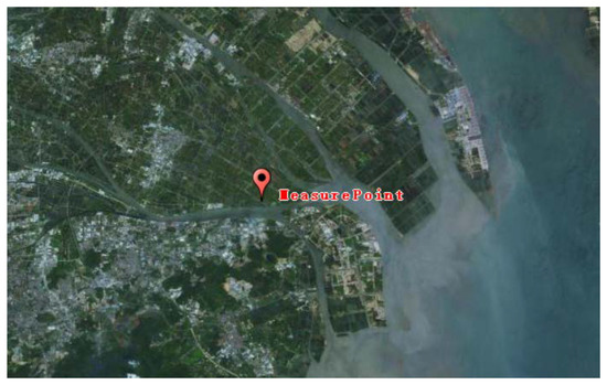 The sample of this calculation example came from the measured data. The observation instrument was a VT-1 phased array Doppler radar system. The wind observation location was near the Hengmen Waterway, which is a typical coastal plain area. The Hengmen Waterway is in the east of Zhongshan City, Guangdong Province, China. It starts at Dananwei, Gangkou Town (the junction of the Jiya Waterway and Xiaolan Waterway) and enters the sea at Hengmen Mountain. As shown in Figure 1, the surrounding area of the observation site is dominated by fish ponds, the terrain is flat, the water surface is open, and there are few obstructions. The height of the sample was 30 m–180 m. The observation time was the whole year of 2020. After screening, the number of valid samples for the study was 8270.