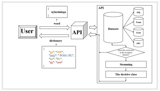 (2) In the meanwhile, there is another problem of the language. Taking into account the fact that there are three families of dialects in the Uzbek language [18], some users might have made a mistake during the use of our API. The main point is that such dialects as Oguz, Kypchak, and Chagatay made a significant contribution to the formation of the modern Uzbek language. However, current official Uzbek language mostly belongs to Chagatay’s dialect. Although, other groups of dialects are still being used among local people in different regions. Take, for example, in the west part of Uzbekistan (Khorezm region), people use the Oguz dialect of the Uzbek language (Khorezmian dialect [18]), while in the east part of the country, only the Chagatay dialect is used. Additionally, in the middle-north area of the state, people speak in the Kypchak dialect. In addition, the Khorezmian language was formed thanks to the influence of a wide variety of non-Turkic languages, such as Persian, Arabic, and others.