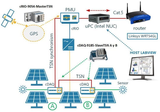 As a solution for the digitisation of PV plants with distributed synchronism, the PV installations would be managed by a TSN master integrated as part of the µPMU. The monitoring of the PV plant could be managed as a stand-alone system in a local area sub-network. For example, when running the IEEE 802.1AS profile in one of the subsystems, the devices that carry out the measurements and critical control take advantage of the TSN synchronisation, while the subsystems with non-critical tasks do not work with this synchronisation but share the same gateways.