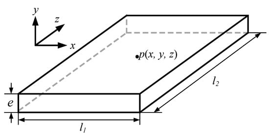 l1 and l2 are the length and the width of the thin-layer elements, and e is the thickness in z-direction, which is shown in Figure 2. The thickness e is much smaller than the sizes l1 and l2 of the other two directions of the element. The in-plane strain components (εx, εy, γxy) are ignored under the circumstances, as well as the stress components (σx, σy, τxy) of the element. The values of partial derivatives of the form functions of thin layer elements of different sizes with respect to the local coordinates at Gaussian points are analyzed and compared in Table 1.