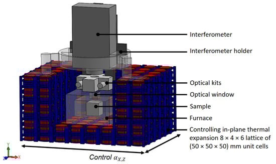 The motivating application for this investigation is a machine frame to support precision measurement equipment (e.g., cameras and optical projection systems). Such a frame would ultimately be used in a temperature-controlled metrology laboratory, with the temperature range around 19–23 °C. Figure 1 shows an example of the use of the (40 × 20 × 30) cm lattice with the precision measurement equipment. The thermal expansion of the frame over this temperature range should not be greater than the resolution of the precision measurement equipment [30], so it does not dominate measurement uncertainty for the instrument.