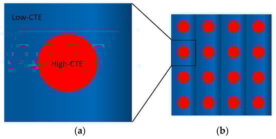 The CTE results for the design in this paper showed that the planar CTE of the proposed lattice design can be tailored by changing the ratios of and . The selection of and was carried out by modifying the geometry with CAD software. The parameters and were varied by the selection of the lattice outer part and the cylindrical inner part materials. However, should be greater than to make the deformation mechanism properly work.