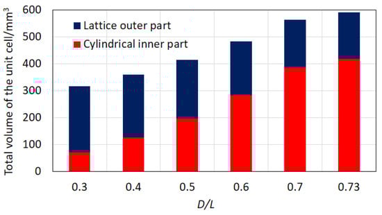 The total volume of the (10 × 10 × 10) mm unit cell by varying the ratio of between 0.3 and 0.73.