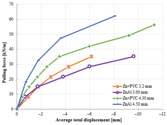 - Sułkowska, A. The Model Tensil Tests Analysis of the Welded Meshes in the ZincAlu Coating or Coated with PVC, Embedded in a Fine Sand. M.Sc. Thesis, Silesian University of Technology, Gliwice, Poland, 2018. (In Polish). [Google Scholar]