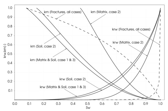 - Wang, J.S.Y.; Narasimhan, T.N. Hydrologic Mechanisms Governing Fluid Flow in a Partially Saturated, Fractured, Porous Medium. Water Resour. Res. 1985, 21, 1861–1874. [Google Scholar] [CrossRef]
