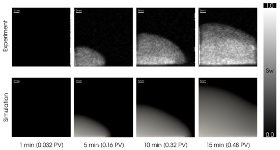 An immiscible displacement experiment conducted by Rangel-German and Kovscek [25] on a homogeneous sandstone block was selected for the validation of the new fracture–matrix discretisation and nonlinear transfer scheme because (1) its geometry and setup are simple and fully documented, (2) the properties of the rock matrix and the fluids are given, and (3) there are detailed measurements that we can compare our results with.