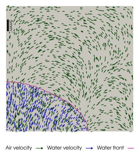 - Tran, L.; Kim, J.; Matthäi, S. Simulation of two-phase flow in porous media with sharp material discontinuities. Adv. Water Resour. 2020, 142, 103636. [Google Scholar] [CrossRef]