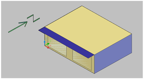 The tested object is a simple cuboid-shaped building with a light structure and low thermal capacity of the building envelope. The dimensions of the building are: length 8 m, width 6 m and height 2.7 m. The building contains only one room, without any internal walls. Glazing consists of 2 windows each with an area of 6 m2 located on the south side. Above the windows, there is solar shading in the form of a bracket with a projection of 1 m. As before, the simulation calculations were made in the Energy Plus 8.4.0 program.