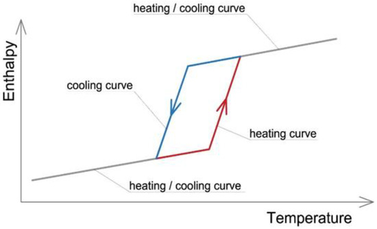 Figure 4. Phase change hysteresis process represented as a function of temperature [26].