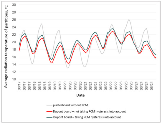 Figure 7. Average hourly values of radiation temperature of partitions in a building with Dupont boards.