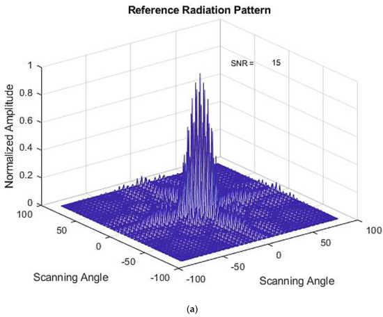 The array factor beam pattern was normalized with equal amplitudes of . Planar array beam pattern is formed by the superposition of two-beam patterns, on the x-axis and on the y-axis. The beamforming output for the planar array pattern is given in (3).