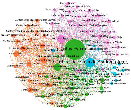 - Community Three (orange), corresponding mainly to European Caritas organizations.