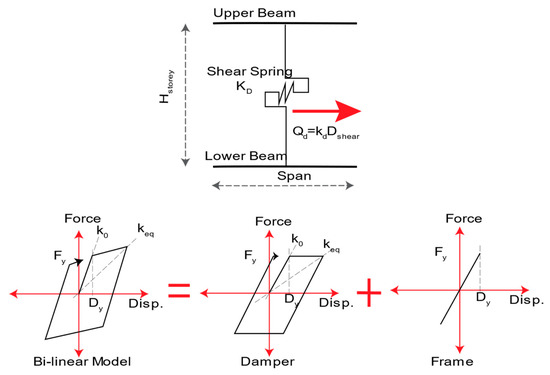 Configuration scheme and bilinear hysteresis model of nonlinear shear springs for BRBs.