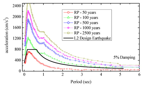 Once the probable earthquake events are sampled for the project lifetime, the next task is to generate the ground motion time history data to be compatible with sampled earthquake intensities. In this regard, the Uniform Hazard Spectrum (UHS) provided in the AIJ (2019) for Nagoya City is used, as shown in Figure 10.