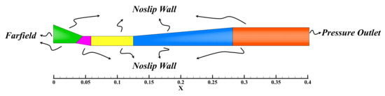 When dealing with the initial conditions in this research, the flow parameters about the free stream are usually used to assign initial values for the entire computational domain. However, for some simulations containing extremely complex flow, the initial conditions of the flow field have greater impacts on the subsequent computation results: if the initial values are not appropriate, the calculation can diverge. Therefore, for the high-precision CFD simulation of the supersonic inlet/isolator, the low-order steady-state simulation results can be used as the initial condition. Boundary conditions are a crucial part of CFD computation, and whether they are handled properly has a great impact on the final result. This research mainly involves four types of boundary conditions: