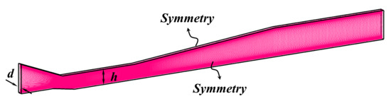 The quasi-3D computation mesh is the stretching result of the 2D mesh in the thickness direction. To reduce the computation costs as much as possible while ensuring the accuracy of the solution, the stretched thickness d is taken as . From experience, if d were set too small, the computation would diverge, as shown in Figure 6.