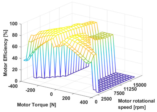Figure 3. The efficiency map allowed for evaluation of the losses at the motor level to be considered based upon its torque