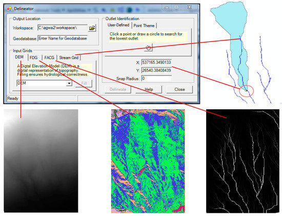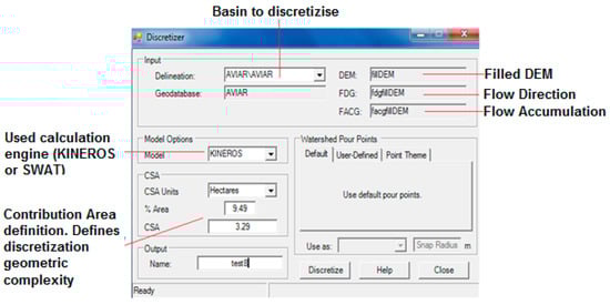 In Figure 3 we can see the delineator interface to show where the user has to input each grid previously calculated using KINEROS 2.