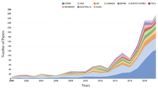 Figure 1 shows the increasing trend in the number of CIM-related papers within the core database of the Web of Science from 2000 to 2020. The rate of increase, particularly after 2016, demonstrates significant acceleration and signifies that CIM research is currently experiencing proliferation.
