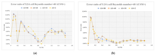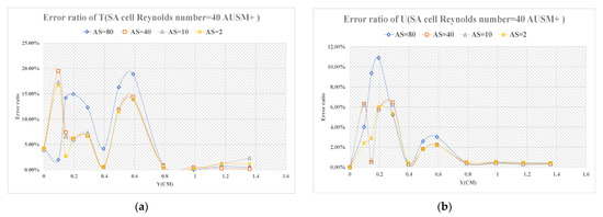(a) error ratio distribution diagrams of T at S = 0.155 m; (b) error ratio distribution diagrams of U at S = 0.155 m.
