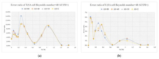 (a) error ratio distribution diagrams of T at S = 0.105 m; (b) error ratio distribution diagrams of U at S = 0.105 m.